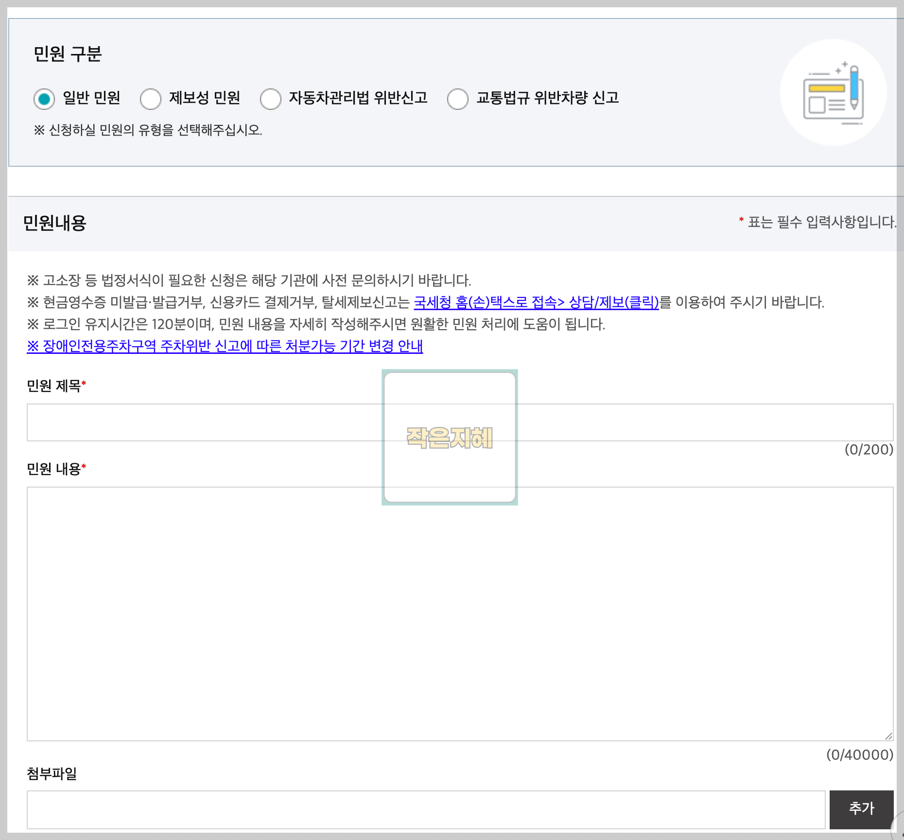 이 가이드를 통해 민원 제출이 원활히 진행되기를 바랍니다.