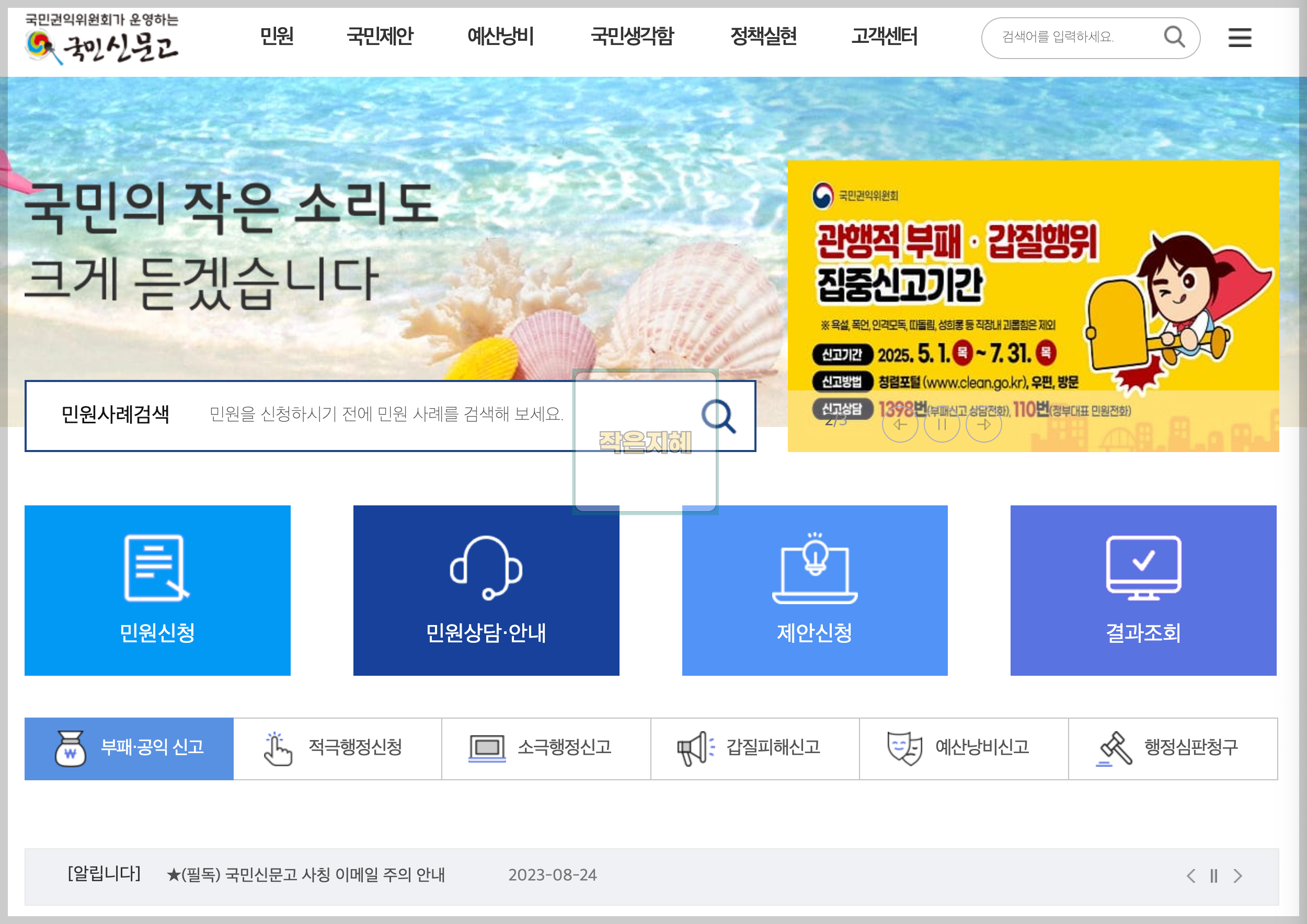 • 국민신문고 공식 웹사이트에 접속합니다.